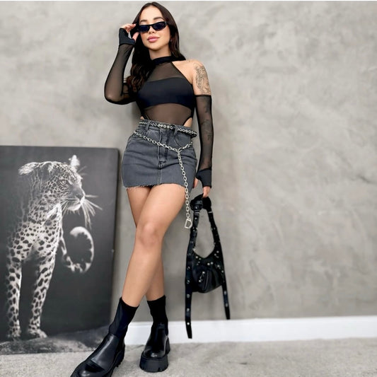 Body Patricia em tule manga longa com luva
