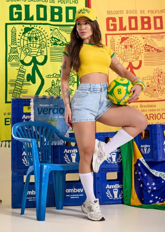 Conjunto bermuda e cropped jeans