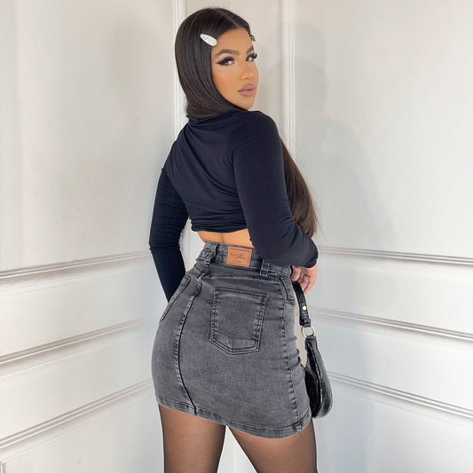 Saia jeans premium lycra mega power black