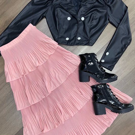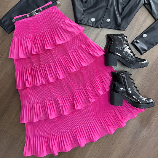 Saia mídi plissada 4 camadas cor rosa