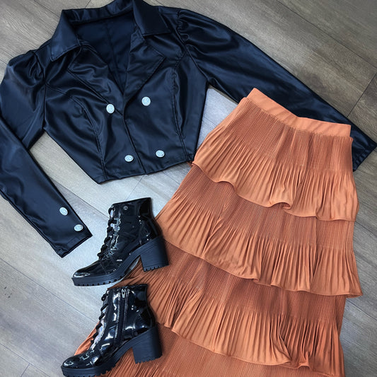 Saia mídi plissada 4 camadas cor caramelo