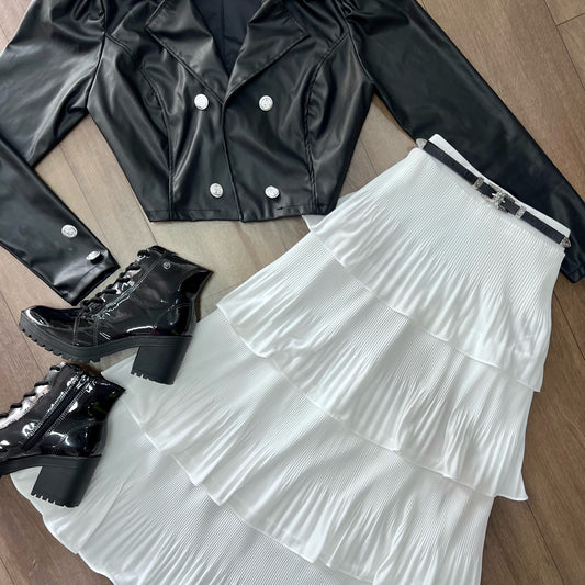 Saia mídi plissada 4 camadas cor branco