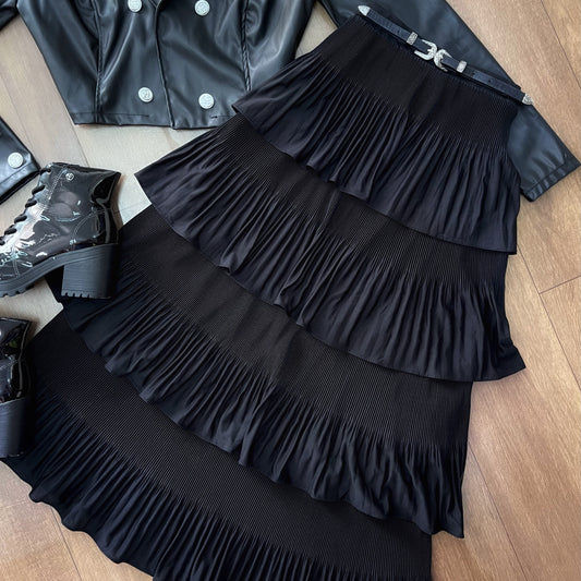 Saia mídi plissada 4 camadas cor preta