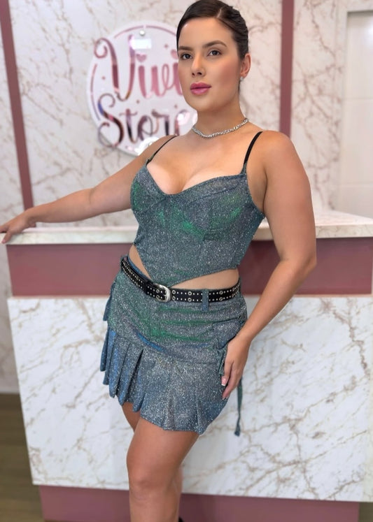 Saia plissada com brilho